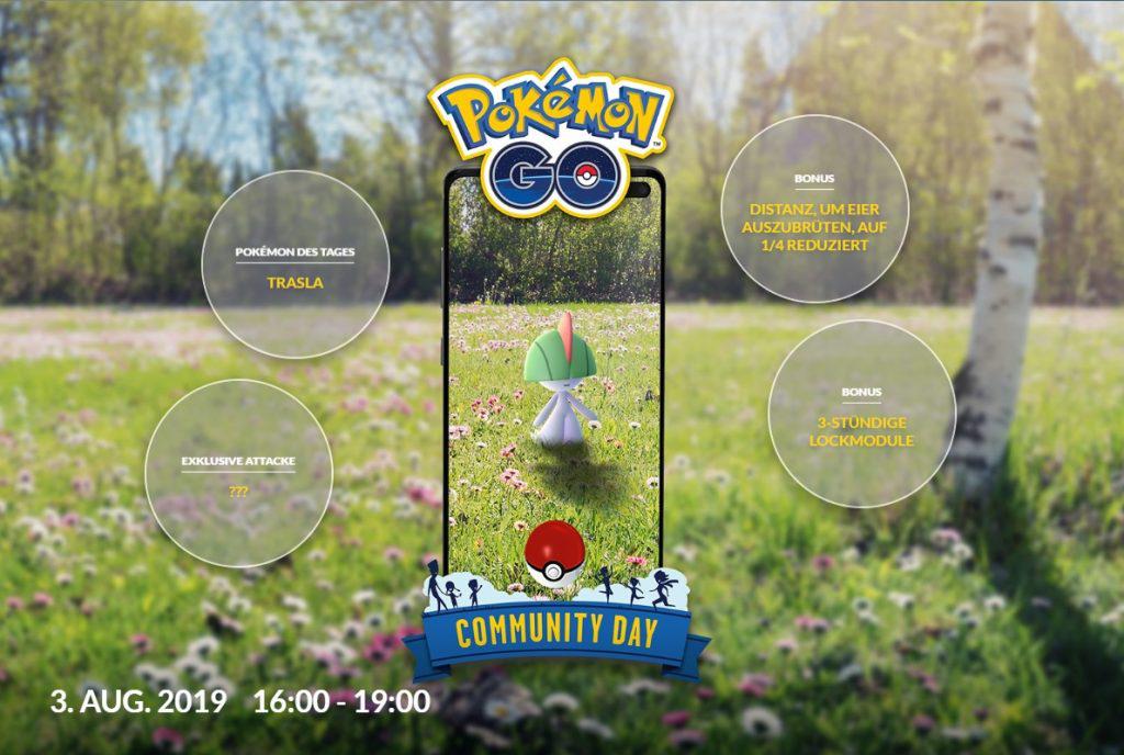 Der Community Day von Pokémon GO im August wurde angekündigt! Diesmal dreht es sich um Trasla. Wir zeigen euch Shinys, Boni und das Datum.