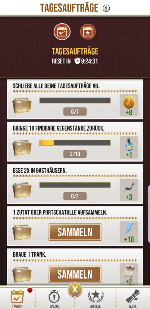 Warum ist das wichtig? Tägliche Aufgaben belohnen euch mit Gold, Tränken, Zutaten, Zauberenergie und sogar Erfahrungspunkten.