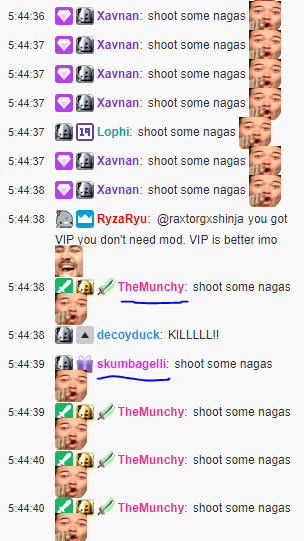 Die anderen Streamer und Zuschauer nahmen das jedoch zum Anlass, den Satz umzuformen und daraus „Shoot some nagas“ zu spammen – immer wieder.